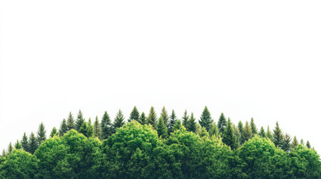 Evergreen trees stand tall and green, creating a dense and lush background with plenty of open space for copy.