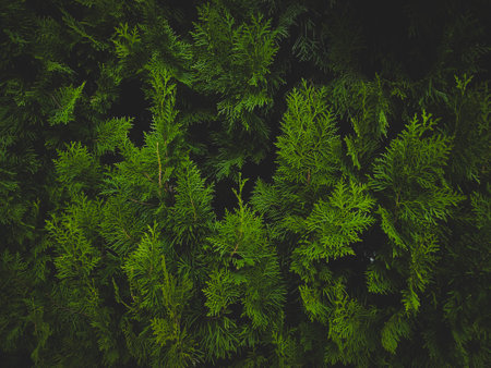 Vibrant evergreen foliage with dense, needle-like leaves creates a rich, textured backdrop perfect for nature-themed projects or botanical displays.