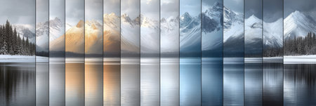 Vertical Collage. Landscape Winter Panoramic Mountain Photography. Photo of the Morning Light.
