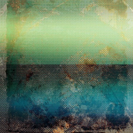 Grunge background with delicate aged texture. Antique backdrop with retro vintage elements and different color patterns: yellow (beige); green; blue; gray; cyan
