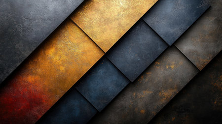 Abstract collage with metallic foil pieces, various textures, contrasting colors. Generative AI
