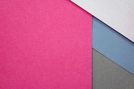 Thick paper of different colors top view. background with geometric shapes. Abstract background from sheets of gray, pink and blue paper. Abstract paper - colorful background, creative design