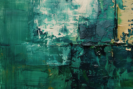 Creating Texture Through Rough Surfaces: Study Of Green Abstract Art On Canvas.