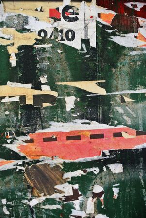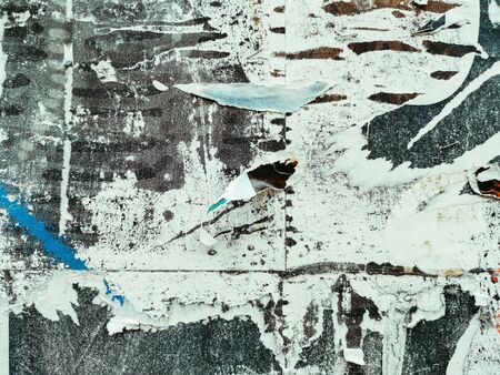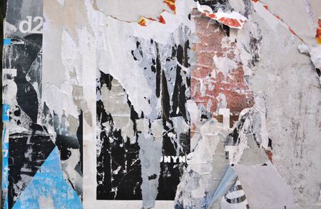 Old grunge ripped torn collage posters creased crumpled paper placard texture background with copy space for text or image