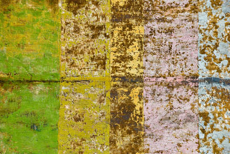 Old wall painted with lackluster colors that is chipped or peeling due to the passage of time and no maintenance.