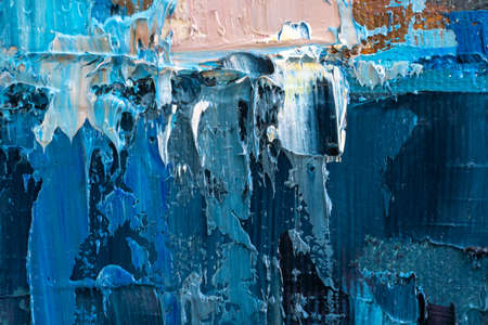 Conceptual abstract closeup of a painting by oil and palette knife on canvas. Oil painting in multicolored tones. The picture is painted in oil.