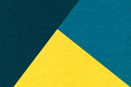 Texture of craft navy blue, cerulean and yellow shade color paper background, macro. Structure of vintage abstract cardboard with geometric shape and gradient. Felt turquoise backdrop closeup.