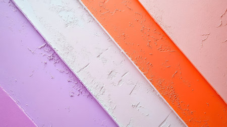 Diagonal lines in shades of lavender, white, coral, and orange form an eye-catching pattern on a textured wall. The arrangement creates an abstract yet harmonious appearance.