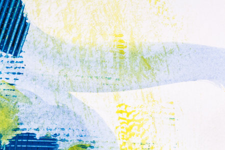 blue green yellow abstract acrylic painting color texture on white paper background by using rorschach inkblot method