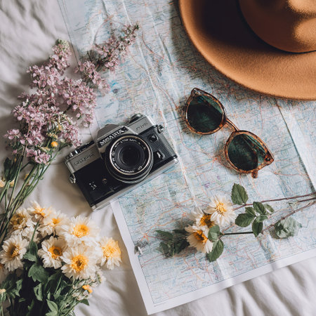 Spring Road Trip Essentials Camera Map Sunglasses