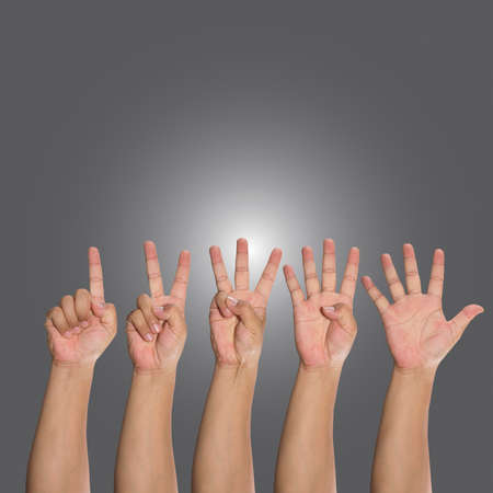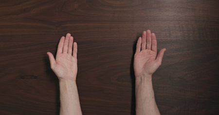 Hands coming up and showing sign language. Nothing in hands sign language in black color.