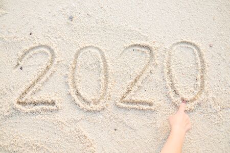2020 on top of stacks of coins with open palms of a female above - business finance concept