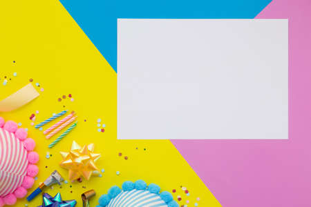 Colorful paper background on top view . (blue, white, yellow, orange)