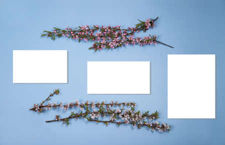 White office desk table with chalkboards. Top view with copy space, flat lay.