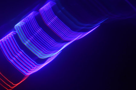This vibrant neon fiber optic lines abstract texture background features dynamic speed lines and modern high-tech patterns, ideal for futuristic design projects, technology themes, or digital