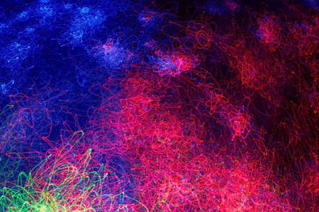 Long exposure colorful abstract line painting background isolated on black. curvy lines from led strip lighting on black background