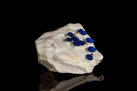 Macro mineral stone Azurite in siltstone against black background close up
