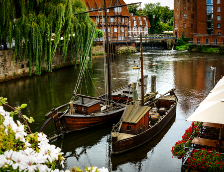 Waterside scenery at the Hanseatic City of Lübeck, a city in Northern Germany