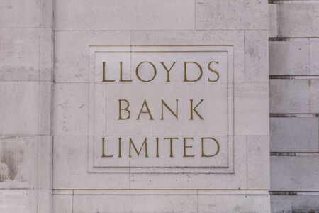 Coventry, Warwickshire, United Kingsom, June 27th 2019, old stone sign for lloyds bank