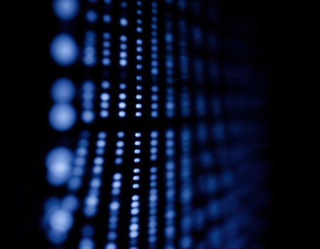 blue binary code on a black background, computer generated abstract background, close up. Blue Matrix Lights