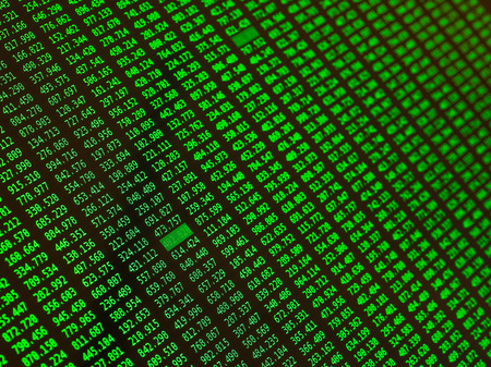 Closeup shot of raises in stock values of corporates in the stock market displayed in from top v