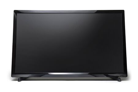 A professional black computer monitor with a blank screen, positioned against a clean white background, ideal for showcasing technology, workspace, or digital display concepts.