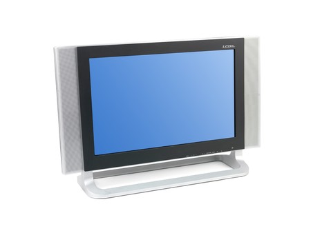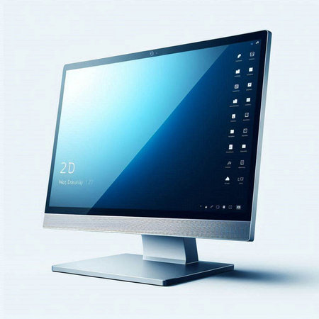 Highly rendering of a computer monitor with blue screen isolated on white background