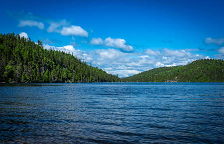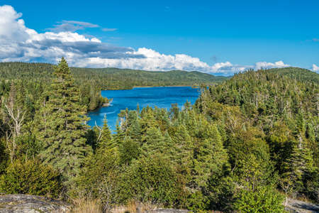 View on the Forest near lake in La Mauricie National Park Quebec, Canada on a beautiful day