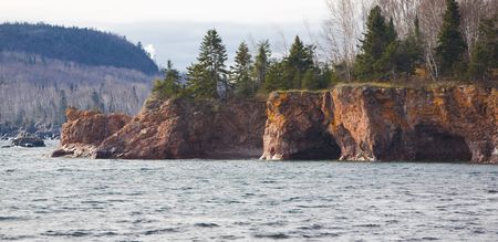 Sea Caves Cliff Face Eroded into the North Shore of Lake Superior in Minnesota