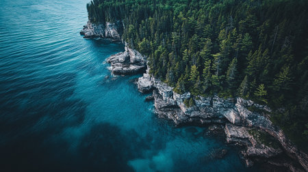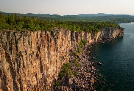 Aerial view of the scenic cliffs at Palisade Head on Lake Superior, showcasing the dramatic landscape and stunning coastline