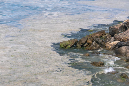 Dirty Sea foam or Whipping cream ocean, Pollution of environment