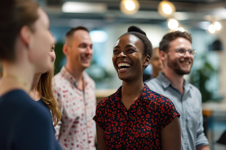 Smiling multi-age colleagues enjoying a moment in a workplace