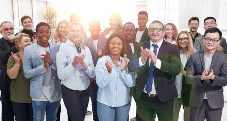 Happy group of business team clapping hands in the hall
