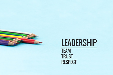 Leadership business concept. Gold color pencil lead other color with word Leadership, team, trust and respect on black background