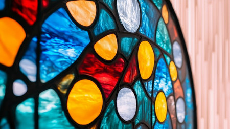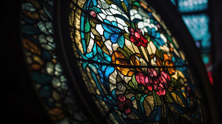 Stained glass window with vibrant colors. Artistic glasswork of light and shadow. AI Generative