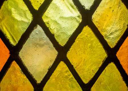 Background close up view of a traditional French stained glass window.