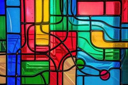 Abstract stained glass with vibrant hues and rounded panes