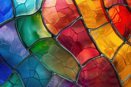 Vibrant stained glass texture with intricate patterns showcasing a spectrum of colors