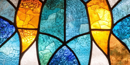 close-up of stained glass window details, created with generative ai
