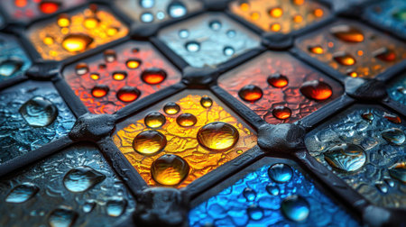 Glistening Dew on Colorful Mosaic Tiles