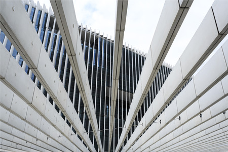 Exploring the Intricate Geometric Design of a Modern Building: A Captivating Display of Lines and An