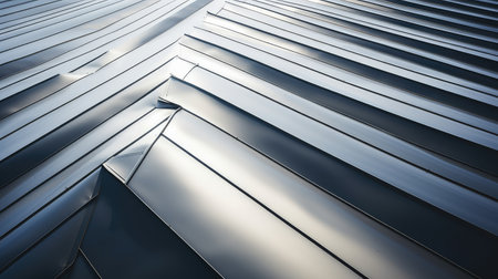 This captivating image showcases a unique perspective of metallic stripes converging into soft light, creating a striking contrast that embodies modern architectural beauty.
