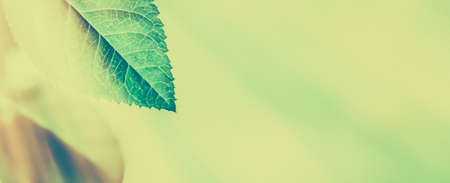 Green leaf on stone background with filter effect retro vintage style and soft focus