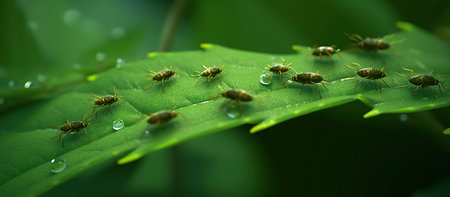 Close up Photograph of Green Insects on Leafy Plants Showing Intricate Details of Bugs in Nature's Ecosystem AI Generative
