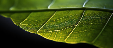 Vivid nano photo of a leaf, showcasing nature's intricate design and vibrant green texture.