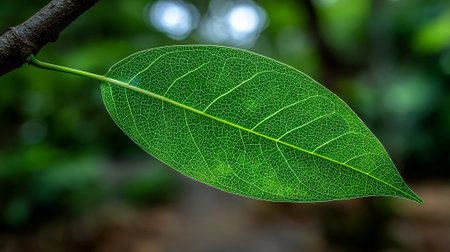 Close-up of a Beautiful Green Leaf with Intricate Veining, Showcasing Nature s Vibrant Vitality