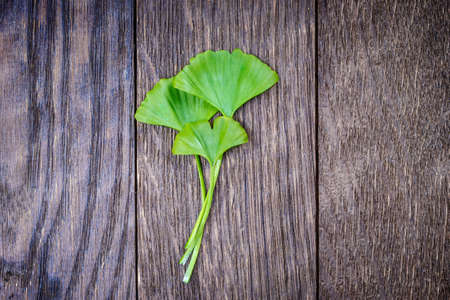 Ginkgo biloba on a wooden background