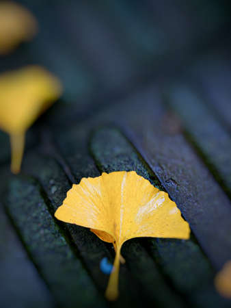 Ginkgo leaves on the ground in autumn, close-up