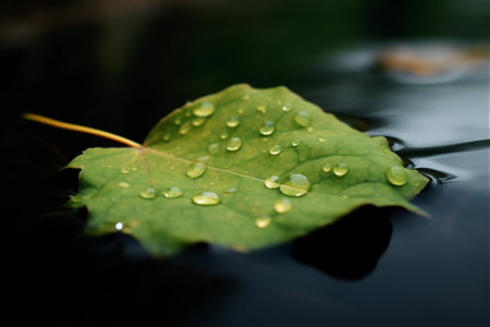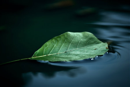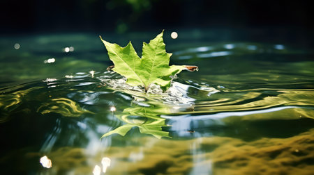 green leaf floats in dark water. AI generated content
