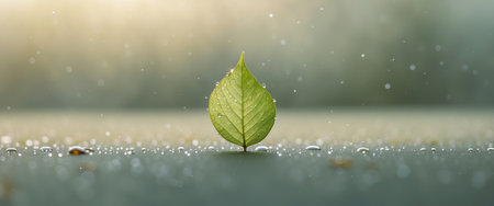 AI Generated. Sliding Leaf with Dew in Soft Natural Light
